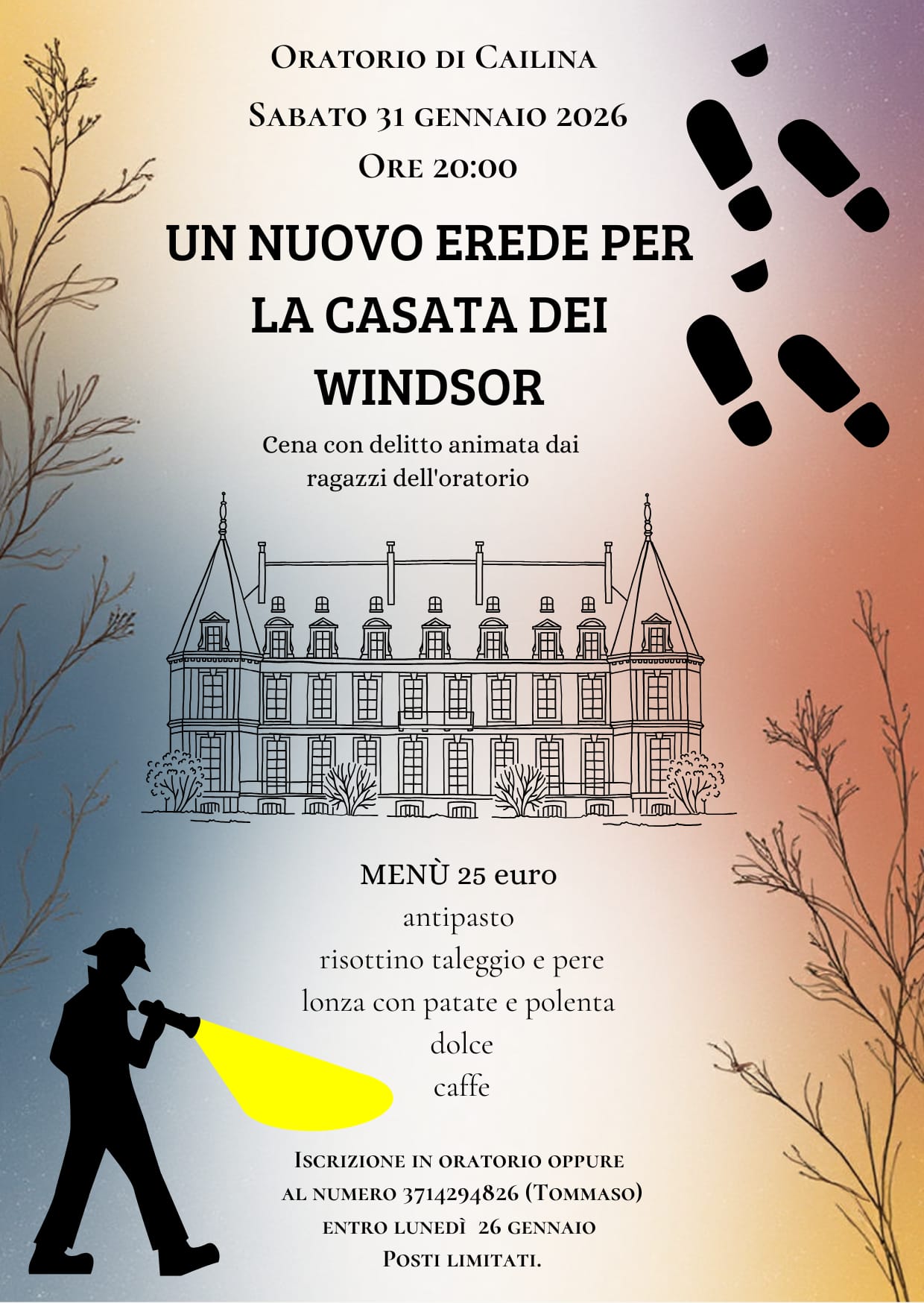 Sabato 31 gennaio, una serata indimenticabile organizzata dai ragazzi dell’oratorio che proporranno una CENA CON DELITTO  ambientata a Londra.