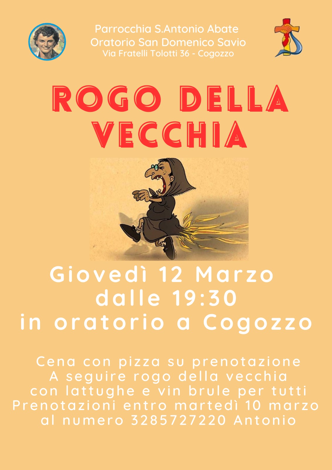 Giovedì 12 marzo (giovedì grasso) negli oratori di Cailina e Cogozzo festa … bruciando la vecchia. Vi aspettiamo numerosi!